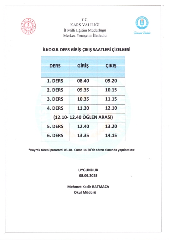 İLKOKUL ÖĞRETNCİLERİMİZ İÇİN DERS GİRİŞ ÇIKIŞ SAATLERİMİZ ÖĞRETMENLER KURULU GEREĞİ AŞAĞIDAKİ GİBİDİR.